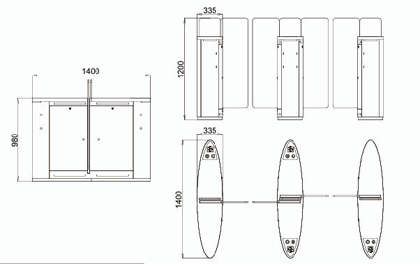 外形尺寸(可定制):长1400×宽335×高980mm;