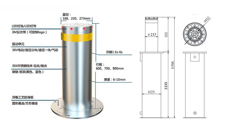 半自动不锈钢升降柱:可通过20吨货柜车,可防水/防潮/防尘。