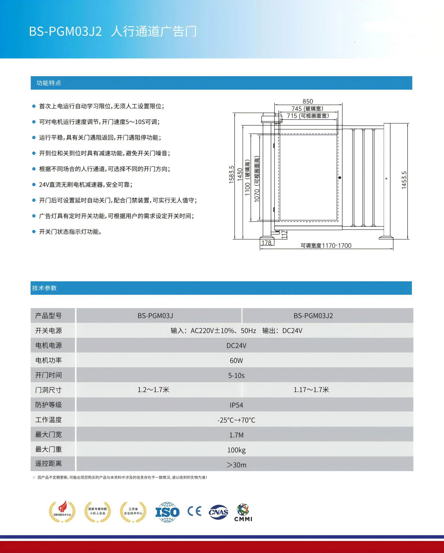 ● 运行平稳,具有关门遇阻返回,开门遇阻停功能;