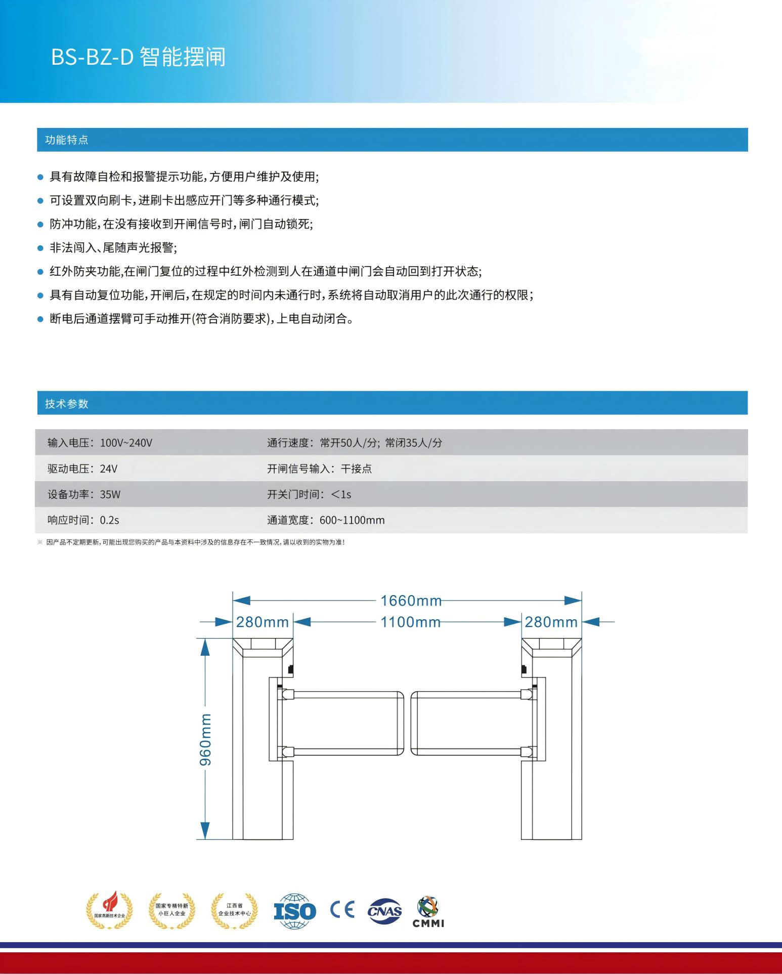 ● 断电后通道摆臂可手动推开(符合消防要求),上电自动闭合。
