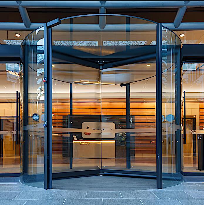 超大型全玻璃旋转门可以显著提升建筑入口附近的风环境和节能效果。可提供3页或4页的旋转门翼选择,带来华贵夺目的入口效果。