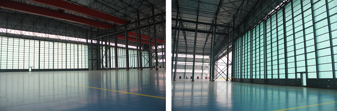 14、完善的安全保护系统:主动安全系统、被动安全系统及辅助安全系统相组合的方式,确保大门安全可靠。我公司的机库大门使用至今,未发生一起因机库门的运行而发生的安全及责任事故,得到了使用方的高度评价。