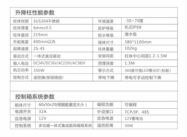 升降柱主要用于控制道路车辆的通行,可以与道闸,停车场系统等配套使用,也可以单独使用,其主要是为敏感区域防止非允许车辆强行闯入而专门设计研发的,具有很高的实用性、可靠性、及安全性。